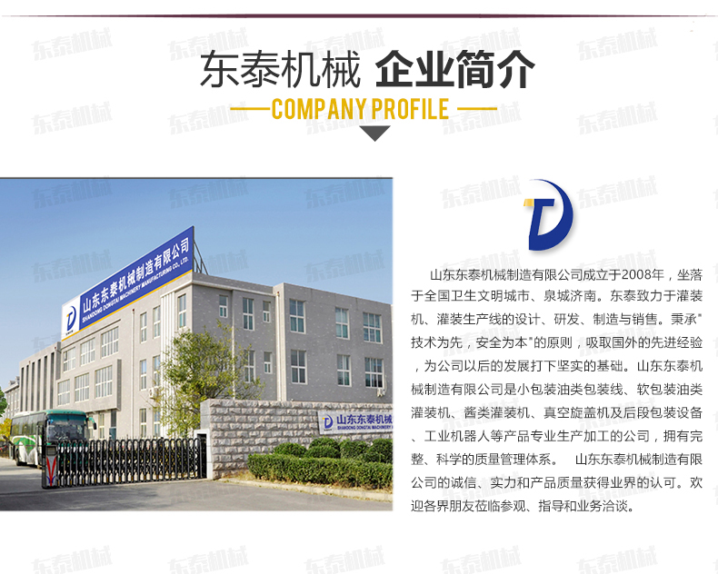 沈陽東泰機械隸屬于山東東泰機械,主營粉劑包裝機、醬類醬料包裝機、食用油灌裝機、食品包裝機、包裝流水線、灌裝生產(chǎn)線等產(chǎn)品,并且為東北地區(qū)客戶提供售后維修服務(wù)...