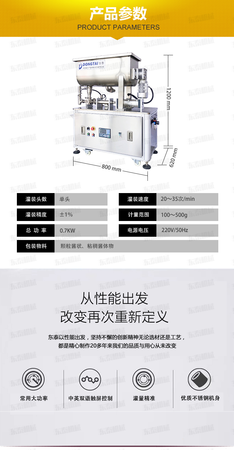 1.防滴漏灌裝頭:316L不銹鋼精制而成,專為醬料灌裝設(shè)計,通過型好,內(nèi)外精拋,真正的食品級