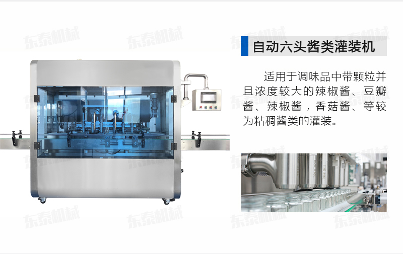 該系列灌裝機采用活塞式氣缸驅動原理,適用于調味品中帶顆粒并且濃度較大的辣椒醬、豆瓣醬、辣椒醬,香菇醬、等較為粘稠醬類的灌裝。灌裝轉閥可以根據客戶物料定做加大,以適應不同客戶物料的灌裝需求。配備臥式攪拌料斗,大限度的保障在灌裝過程中物料均勻、無油醬分離。該設備在設計上大大縮短了下料斗到灌裝頭的灌裝距離,克服了含油量大的物料(如:含芝麻粒的辣椒油)在灌裝過程中出現的有些瓶油多,有些瓶醬多的灌裝誤差大的缺點。