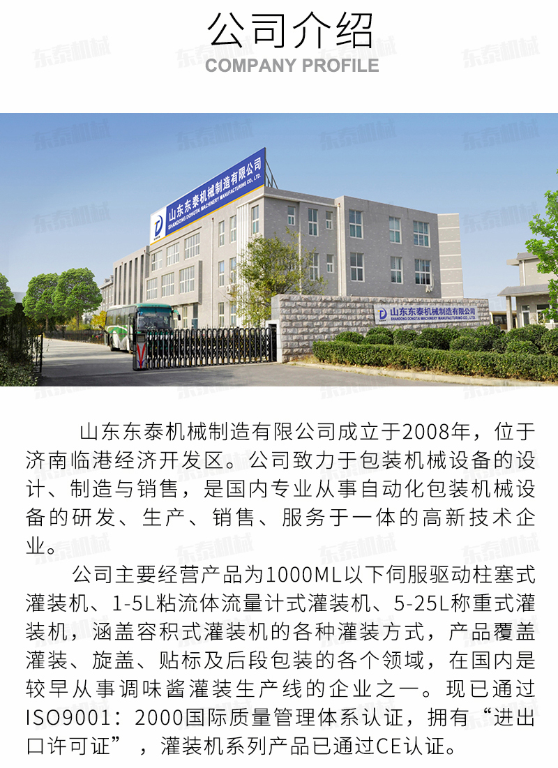 沈陽東泰機械隸屬于山東東泰機械,主營粉劑包裝機、醬類醬料包裝機、食用油灌裝機、食品包裝機、包裝流水線、灌裝生產線等產品,并且為東北地區(qū)客戶提供售后維修服務...
