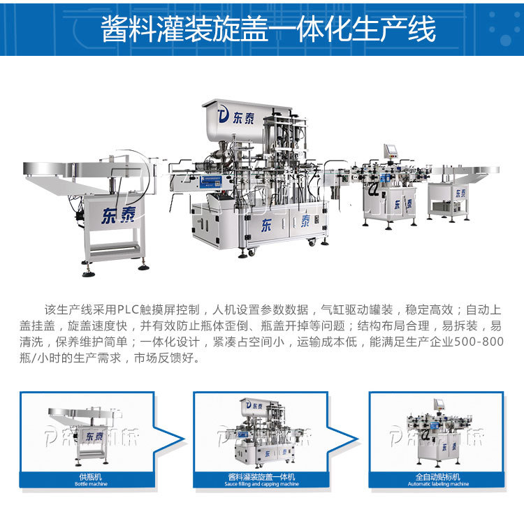 我們可以看得出來這款蒜蓉辣醬灌裝機不僅是優(yōu)點眾多其適用范圍也是相當(dāng)廣泛,蒜蓉辣醬灌裝機不僅是具有高速,自動化和可靠性的完整程度高好等特點,消除包裝工藝所造成的錯誤降低工人的勞動強度并降低能源和資源的消耗,蒜蓉辣醬灌裝機還保證產(chǎn)品的質(zhì)量,減少污染等等的優(yōu)勢,保證了醬料相關(guān)企業(yè)在市場中的中的長期發(fā)展。